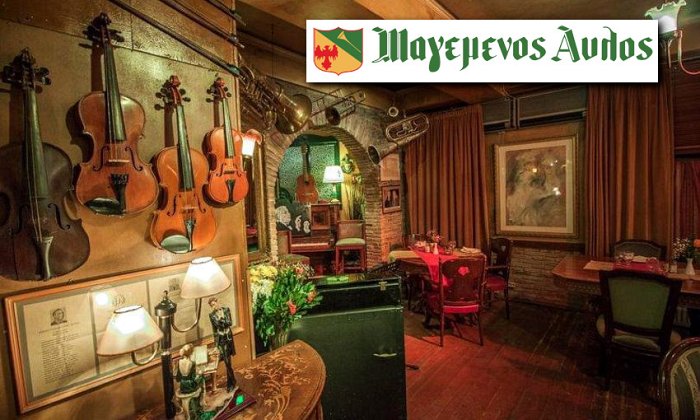 15€ από 30€ ανά άτομο, με ελεύθερη επιλογή από τον κατάλογο, δωρεάν κρασί και ζωντανή μουσική, στον “Μαγεμένο Αυλό”, το ιστορικό καλλιτεχνικό εστιατόριο στην πλατεία Προσκόπων στο Παγκράτι