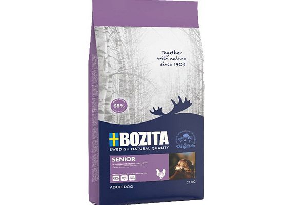 Ξηρά τροφή από τη Σουηδία για ηλικιωμένους, λιγότερο δραστήριους σκύλους κάθε φυλής, παρασκευάζεται σε αρμονία με τη φύση, με φρέσκο κοτόπουλο & FOS, κυνόροδα, Ω3 & Ω6, χωρίς περιττά πρόσθετα & ΓΤΟ.