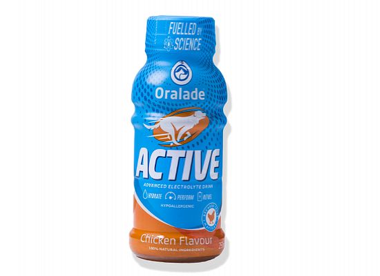 To Oralade Active είναι ένα εξελιγμένο ρόφημα ηλεκτρολυτών με 100% φυσική γεύση κοτόπουλου και βασικά αμινοξέα απαραίτητα για τους τετράποδους φίλους μας με έντονη καθημερινή δραστηριότητα.